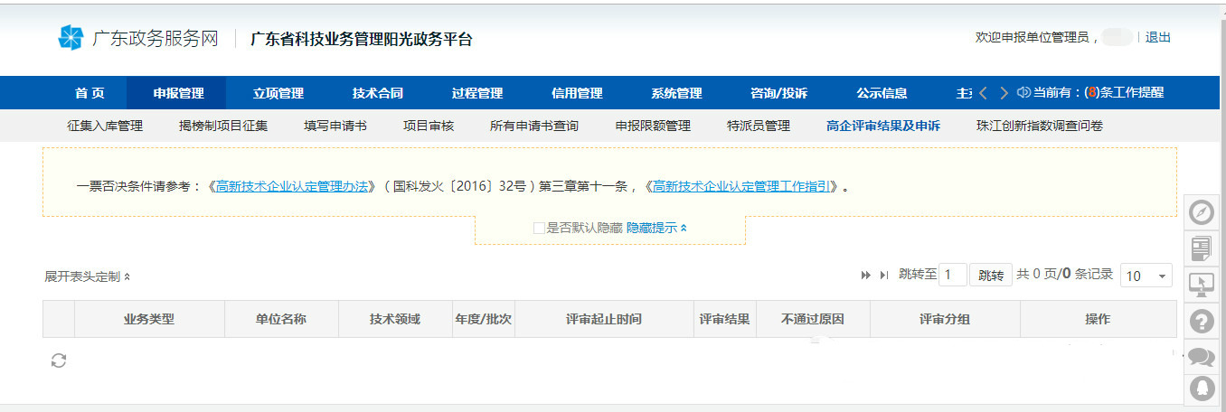 打開“廣東省科技業務管理陽光政務平臺”網站: