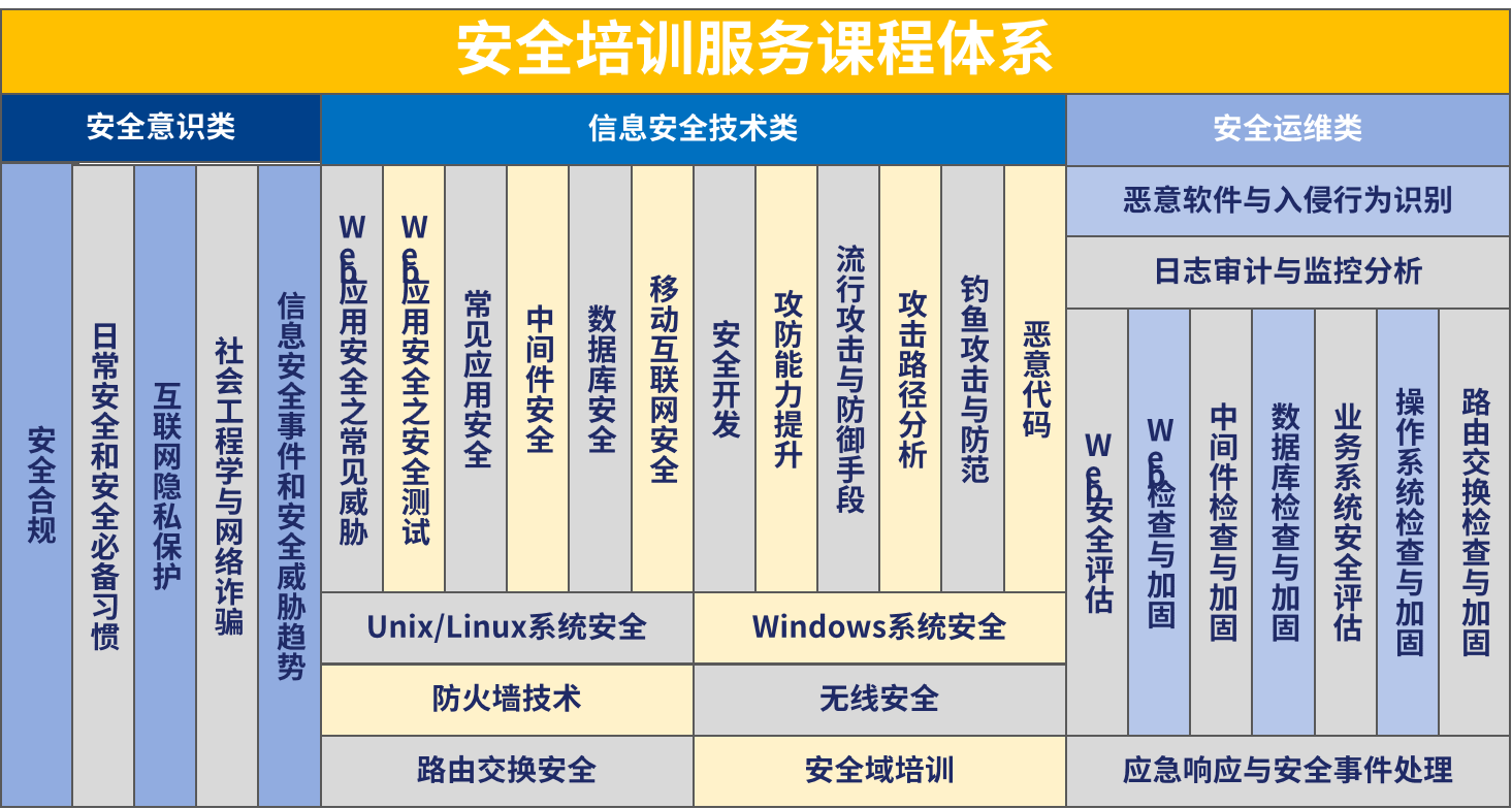 安全培訓是提升員工安全意識、強化組織防護能力的關鍵環節。該測評項聚焦業主單位在日常運營、系統建設、數據處理等活動中可能面臨的人為疏忽與操作風險,通過體系化、場景化的培訓機制,增強全員對網絡安全政策、攻擊手段、防護規范的理解與執行力,減少因人為因素引發的安全事件,實現“認知提升在前、行為規范在中、風險控制在后”的閉環培訓流程,幫助業主單位構建“全員知安全、懂安全、守安全”的組織安全文化。